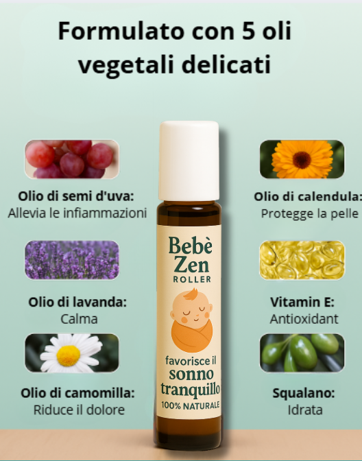 Baby Zen Roller® è privo di sostanze chimiche , perché il vostro bambino merita il meglio. In quanto azienda tedesca, puntiamo su ingredienti di alta qualità, biologici e naturali .