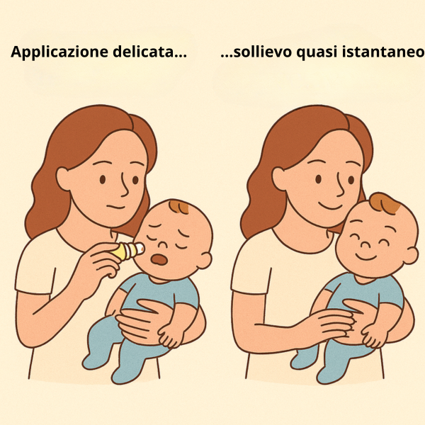 Il sollievo è spesso percepibile pochi istanti dopo l'applicazione e, in base alla nostra esperienza, contribuisce in modo significativo al benessere del vostro bambino.